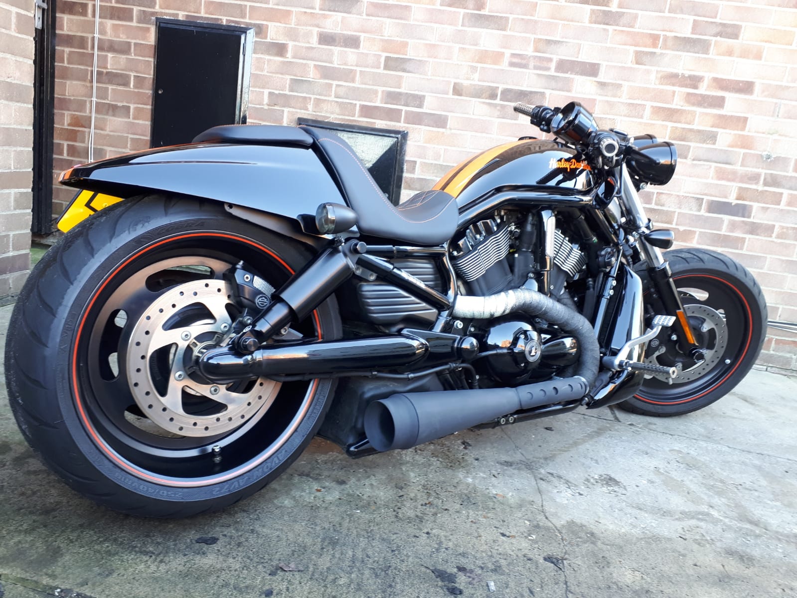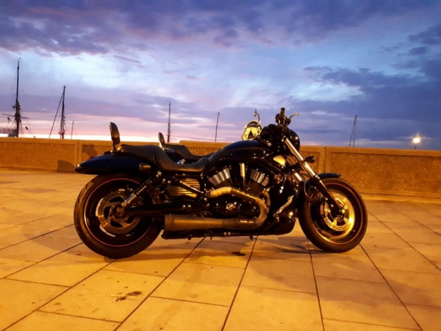 Well where do I begin, my first introduction to motorcycles was probably around the age of 14 when me and my mates were into Honda Cub field bikes – that was the start point for me with bikes. Then, at 16 the FS1E was my very 1st road bike, then came the RD250 brand spanking new @ £920 in Kenny Roberts racing yellow. I passed my bike test and got rid of the L plates. Then the next phase came along with customising cars Escorts, Zodiacs, the Chevy Camaro, Mustang, Beetle. Then married, kids, family all took over so cars and bikes were gone for something sensible. Now we’re in 2003 and got the bike bug back so got hold of an 883r sportster, Stage 1 tuned and a few screaming eagle goodies then I went to the London bike show in 2007 and saw what I wanted yes it’s the Night Rod Special, couldn’t afford a brand new one so had to wait until 2010, when I brought her from Warrs in London – one of the worst dealers in the world! Had her for 10 years now stage 1 tunes, later model rear end, drag bars, lots of black parts air ride, Dyna headlights, custom leather seats, 250 rear tyre, and now a quiet akra pipe (sorry for the bleeding ear drums gents from the CFR pipe!).